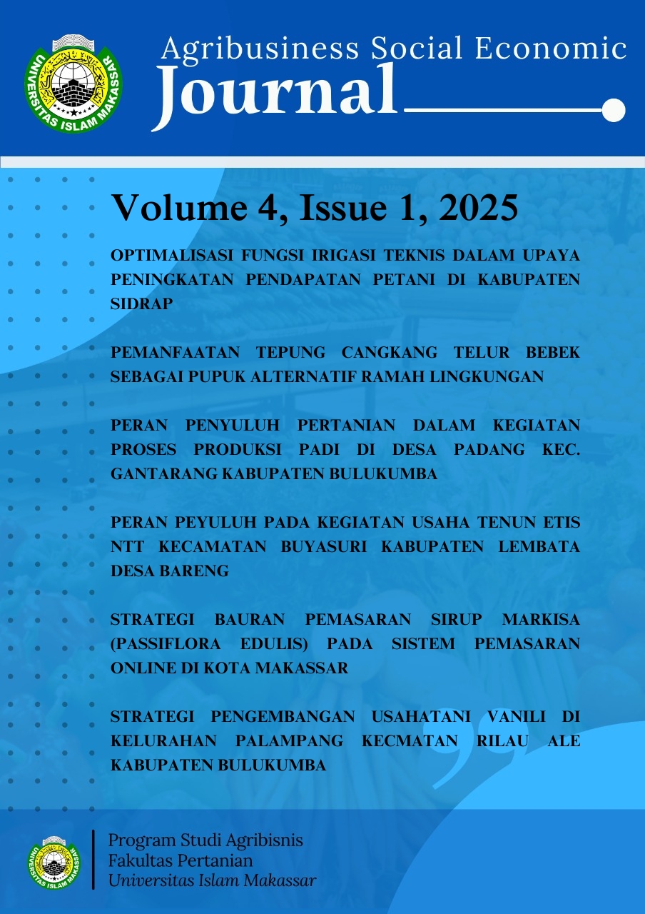 Agribusiness and Socioeconomic Journal (ASE Journal) menerbitkan artikel-artikel di bidang Agribisnis, Sosial, dan Ekonomi Pertanian. ASE Journal diterbitkan oleh Program Studi Agribisnis Fakultas Pertanian Universitas Islam Makassar dan merupakan jurnal ilmiah berskala agribisnis dan sosial ekonomi pertanian. Jurnal ini merupakan media penyebarluasan informasi yang merupakan hasil pemikiran dan penelitian para dosen, peneliti, mahasiswa dan praktisi yang berkepentingan dengan pengembangan agribisnis dan sosial ekonomi pertanian. Jurnal ini terbit dua kali dalam setahun (Edisi Desember dan Juni)